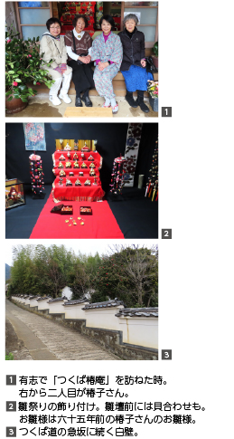 ●3月には雛祭りを祝う もうすぐ雛祭り。ますぶち椿子さんは忙しくなる。つくばの古民家で、雛支度を始めるのだ。自分と娘のお雛様に加えて、近所から譲り受けたものや、友人宅の蔵からでたもの、加えてふと目に入った骨董品店やオークション、メルカリなどで集めたものも飾る。 二年前、古民家に「つくば椿庵」という名を付け、「古民家ギャラリー」として公開したら、ご近所の方をはじめ、道行く登山家やトレッカーまで立ち寄ってくれた。海外の方が、「日本の文化」として喜んでくれたことに、新しい可能性を感じ、「五節句を祝う」をテーマに、お節句のたびに節句にちなんだ設えをし、公開することにしたのだ。 三年目となる今年の雛祭りは、例年通り二月下旬から三月の初旬の予定。この頃は、「筑波山梅まつり」の時期とも重なる。斜面にある梅林は、平地の梅林とは違い、非常に見応えがあるという。 昨年は「童子」の春合宿でもここへ立ち寄った。秋には初めて「筑波山麓秋祭り」に参加したり、七五三の着付けや撮影に部屋を貸したり。また今年の二月からは、毎月ここで、地域の方と句会や茶道のお稽古も始める予定だ。 (2026年の桃の節句は、3月8日(日)まで。なお、旧暦の桃の節句として4月4日(土)から12日(日)も楽しめる) ●つくばで古民家を手に入れる 椿子さん夫妻には、藤沢の自宅はそのままに、「古民家で過ごしたい」という夢があった。その昔、筑波山の中腹に椿子さんの実家があった。今は無き、明治時代に建てられた藁ぶき屋根の家。幼少のころは毎年そこで夏を過ごした。 だから定年後すぐ、夫の趣味のDIYで再生できる程度の小さな古民家をつくばで探した。しかしまったく売買のない地域だった。二年ほどしてやっと一軒売りにでたのが、古くから代々続いた旧杉田邸。明治二年築のその古民家は、あまりに広く大きすぎた。ただ「つくば道」に面した冠木門と、その裏通り沿いの急坂に続く白塀に魅せられて、困難を覚悟のうえで購入、再生に取り組むことにした。 三年前の晩秋に引き渡されたその古民家は、荒れ果てていて、覚悟はしていたもののさすがに途方に暮れた。しかしやればどうにかなるもので、一年もしたら、他人を招けるほどに再生できたそうだ。 ●創刊当時から俳句結社「童子」に入会 ところで椿子さんは、「童子」創刊と同時に入会した「童子」の大先輩だ。編集プロダクション時代、桃子主宰と出会い、世田谷襤褸市吟行のあとの袋回しに参加し、主宰にふわっと誘われたのが、俳句を始めるきっかけとなった。俳号の「椿子」は、桃子さん、桜子さんにあやかり「花」にしようと、大好きな椿にちなんで「椿子」にした。主宰から、高濱虚子の『椿子物語』のことなども伺い、ますます「椿子」という俳号が気に入ったという。 入会当時は教員の仕事や子育てで忙しかったが、「童子·かわら版」を担当したり、「神奈川句会」も担当、「桃子歳時記」の編集のスタートにも携わった。 歳時記編集では、藤沢の椿子さん宅に主宰をはじめ、担当者が集い、細い短冊に書かれた俳句から季語を抜き出し、部屋中に広げて季語別に編集した。当時はパソコンなどなかったから、今考えると途方もない労力を使った手作業だったが、皆であれこれ言いながら進める作業はとても楽しい時間だった。その時、椿子さん宅で主宰が詠んだ句に、〈雛壇の下に健太のおまるかな〉があった。その健太くんもすでに三十歳前半。第一子は当時の彼の齢を越えている。 ●地元では、カウンセラーとしても活動 椿子さんは、子育て後、仕事としては教職に復帰したが、高校の管理職時代、心身ともに全く余裕がなく、俳句からも遠ざかっていた。しかしその間も、必ずや復帰することを心に決め、「童子」会員であり続けた。定年退職後、どうにか復帰できたことを大切に、俳句を続けていきたいという。 また退職後、地元(神奈川県藤沢市)では、「中高生とのお母さん専門のカウンセラー」としての活動をスタート。カウンセリング、セミナー、お母さんの語り場「思春期子育てカフェ」を柱に、地元のみではなく、オンラインで県外にも活動の場を広げている。 筑波での古民家再生と、地元でのカウンセラーとしての活動の両立は、そのバランスが難しいがライフワークとして続けていきたいと語っている。